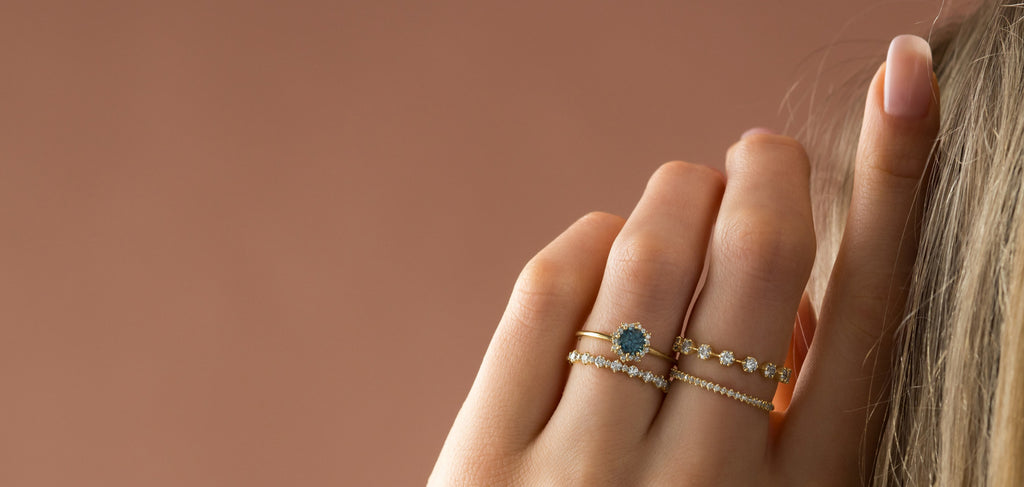 Our commitment to craftsmanship extends to the quality of our materials and the practices by which we source them. As an expert in diamonds and gemstones, Melanie hand-selects and maintains an extensive collection of stones. With a careful eye, she balances the clarity, color, value, size, and cut of each stone before purchase, ensuring the highest quality. Clients also have the opportunity to source their own diamond when shopping our made to order engagement ring collection. Our diamond experts are available every step of the way so that your sourcing standards are as sharp as Melanie’s. As vetted members of the Ethical Metalsmith Community, we only ever use ethically sourced stones and sustainable sourcing methods. We prioritize utilizing materials with low environmental impact, like Montana sapphires and recycled gold. Both our pieces and our practices are built to outlast a lifetime.